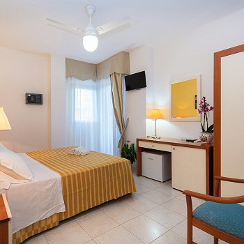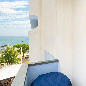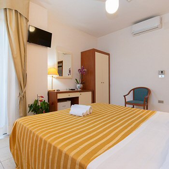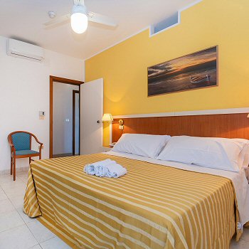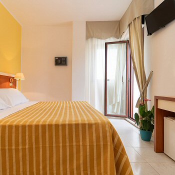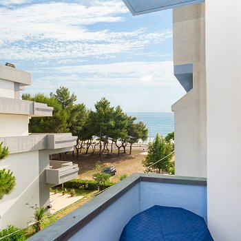 Die Zimmer haben zwei Balkone mit Blick auf die Hügel und einen seitlichen Blick auf das Meer (Poolbereich) und sind mit regulierbarer, unabhängiger Klimaanlage ausgestattet.