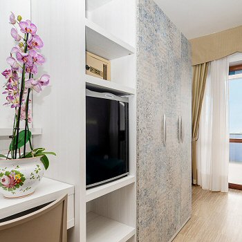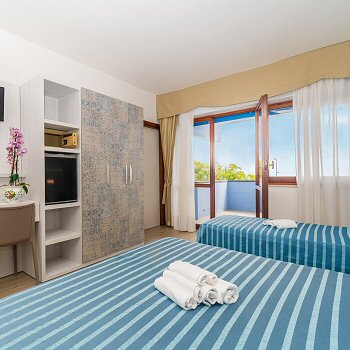 Die Zimmer haben einen großen Balkon mit Blick auf das Meer, sind klimatisiert und verfügen über ein eigenes Bad.