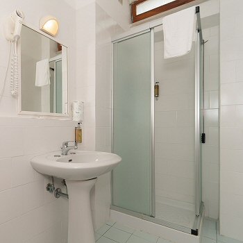 Eigenes Bad mit Duschkabine.