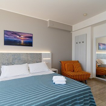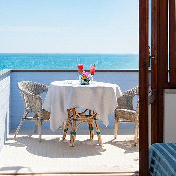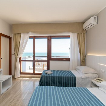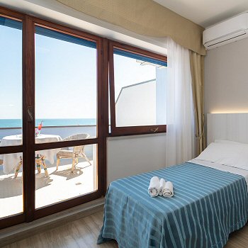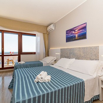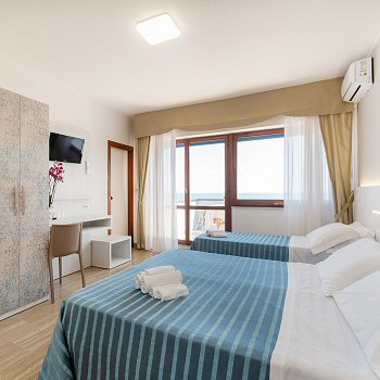 Die Zimmer verfügen über einen großen Balkon mit Blick auf das Meer, Klimaanlage und unabhängige Klimaanlage.